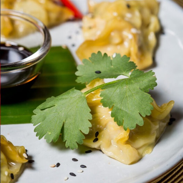 ENTRÉES ET POTAGES, FrenchRaviolis vapeur aux crevettes et légumes (5 pièces)